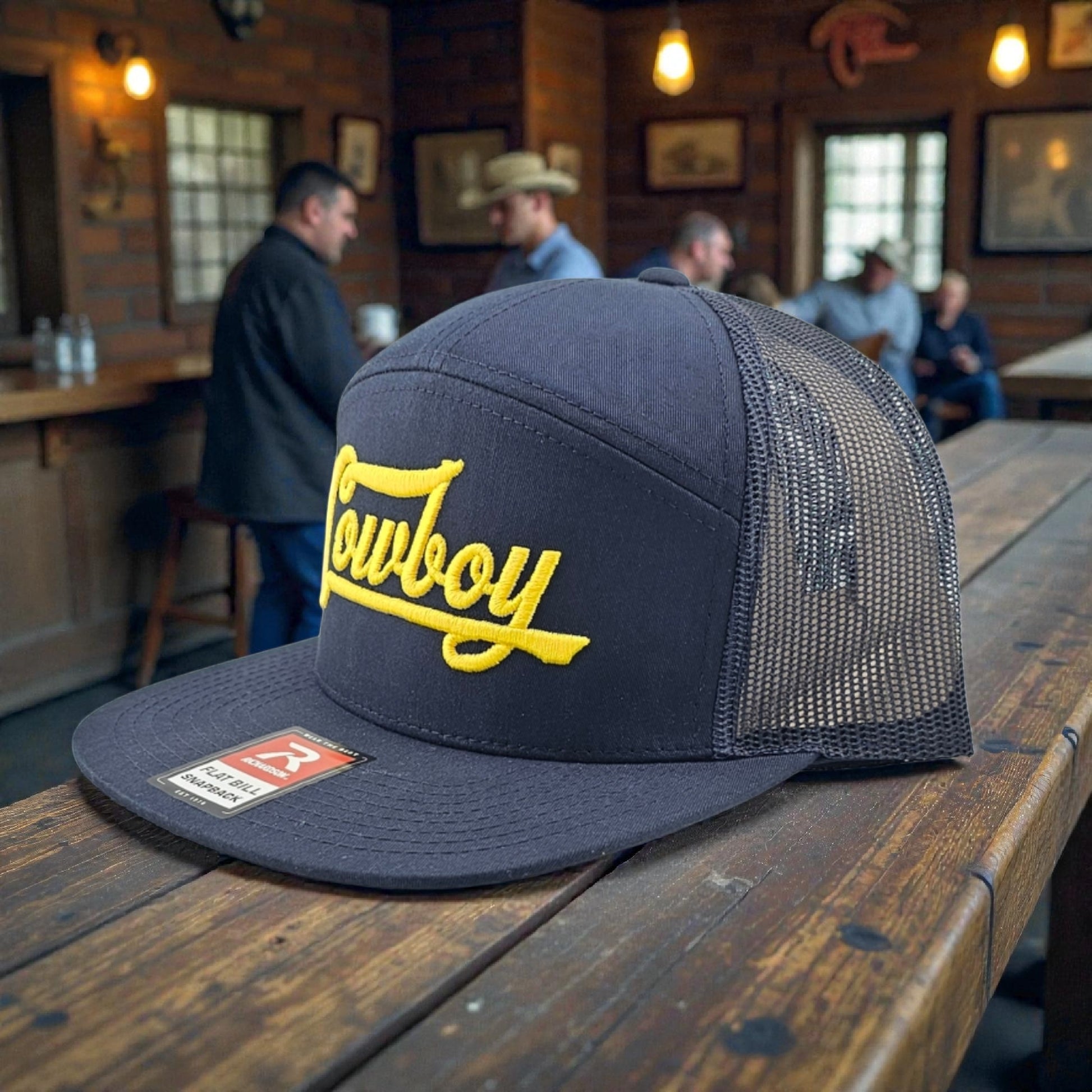 Keep it classic and unapologetically western with this embroidered Richardson 168 flatbill hat featuring the word “cowboy.” Clean, bold, and timeless, this hat is made for those who live the lifestyle, not just wear the look. Whether you are out working, riding, or just carrying that cowboy attitude wherever you go, this hat says it all without saying too much.
