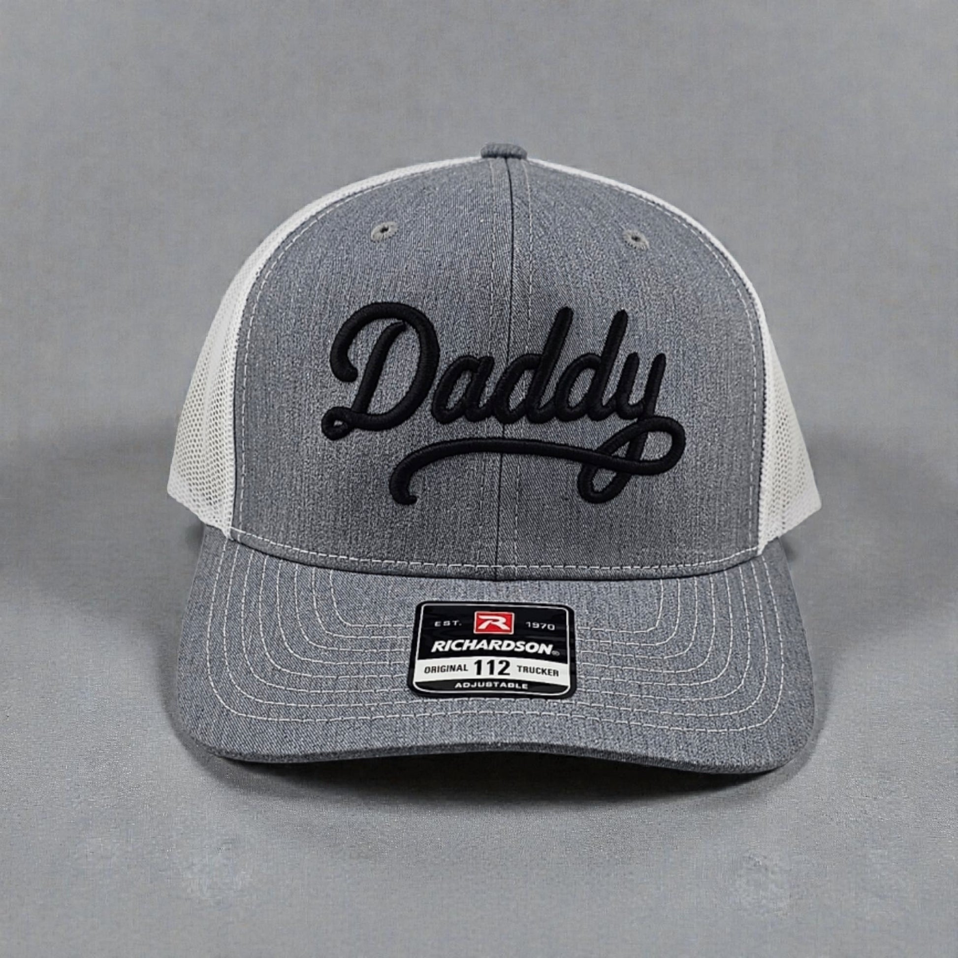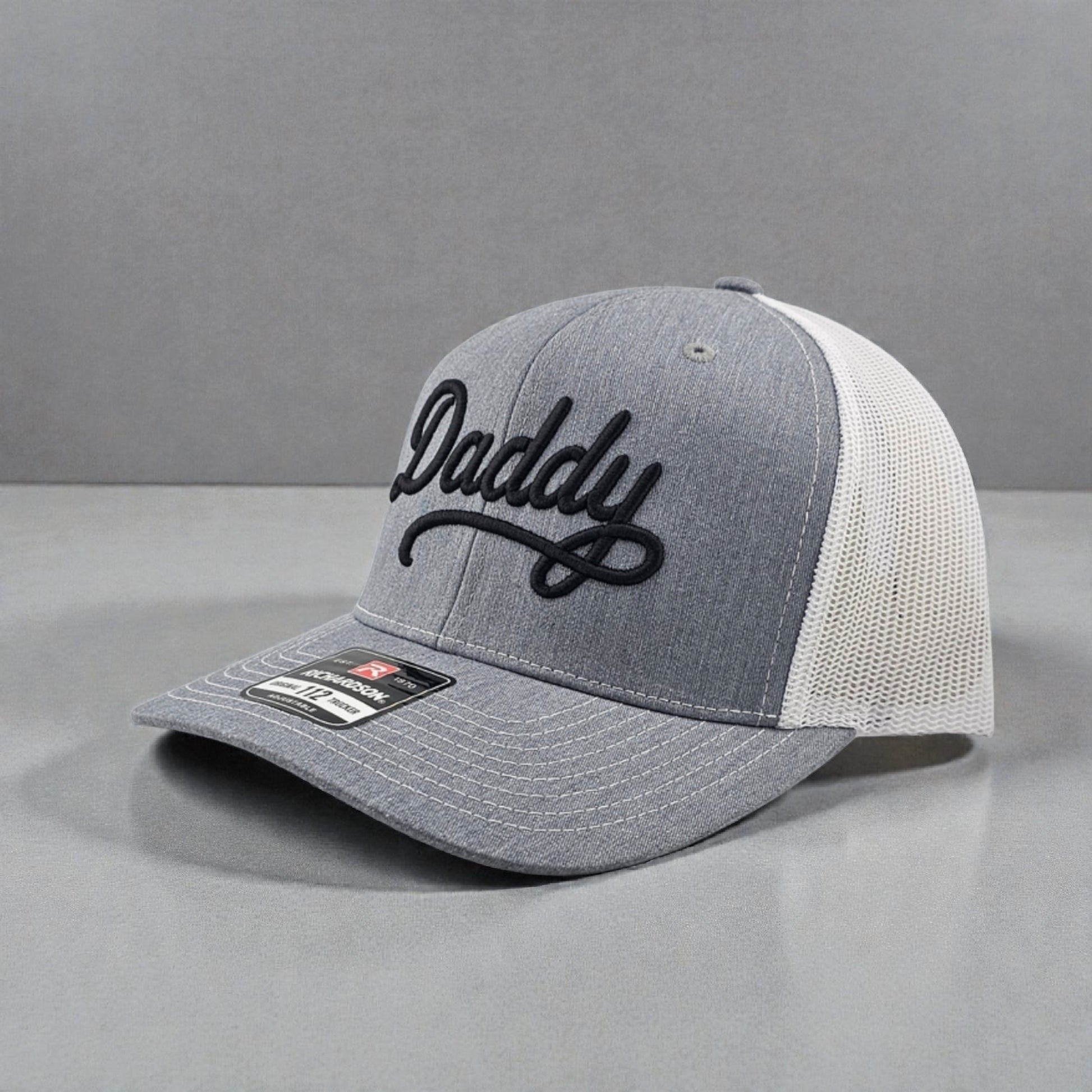 Make a bold statement with this embroidered Richardson 112 snapback trucker hat featuring a raised 3D puff “Daddy” design. Built on the iconic Richardson 112, this hat delivers the perfect balance of comfort, durability, and everyday style.
