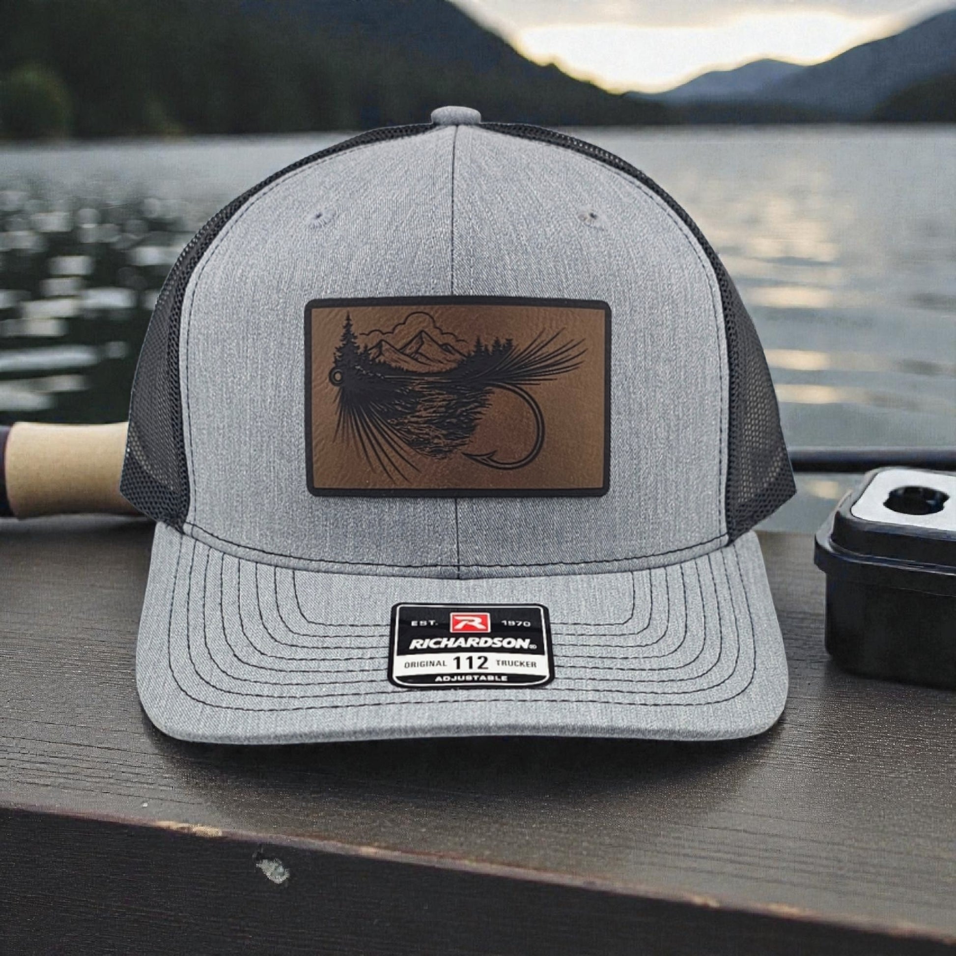 Built for early mornings on the water and long days chasing the perfect cast, this snapback trucker hat features an engraved leatherette patch inspired by the art of fly fishing. Clean, rugged, and timeless, the engraved design captures the calm of the river and the thrill every angler knows when the line tightens.